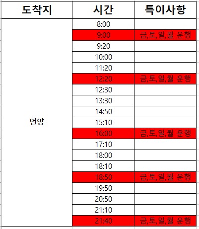 언양 시외버스터미널 정보+시간표,요금표 등 (2023년 6월21일 기준)