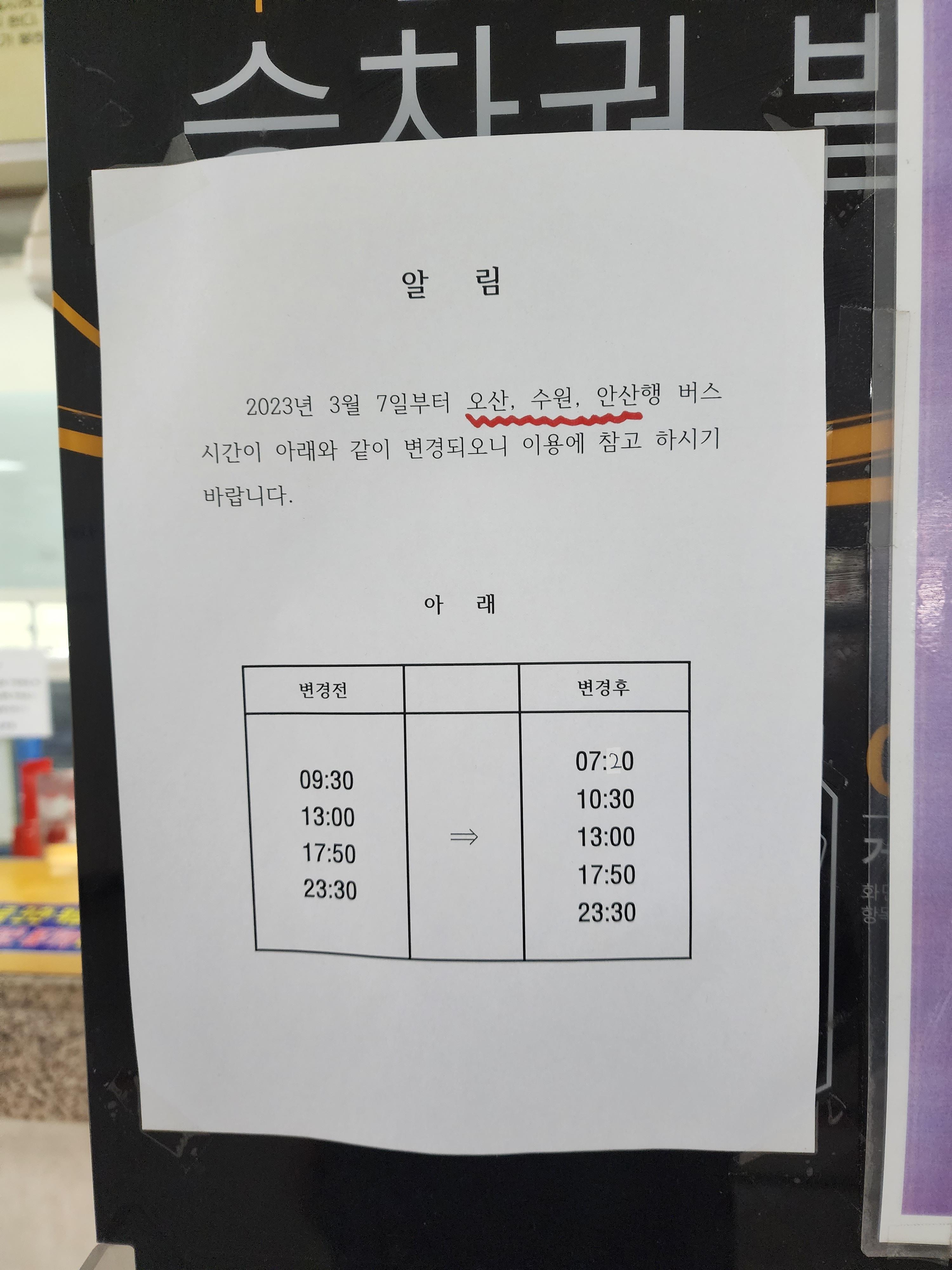 버스시간이 이렇게 변경되었다고 합니다.