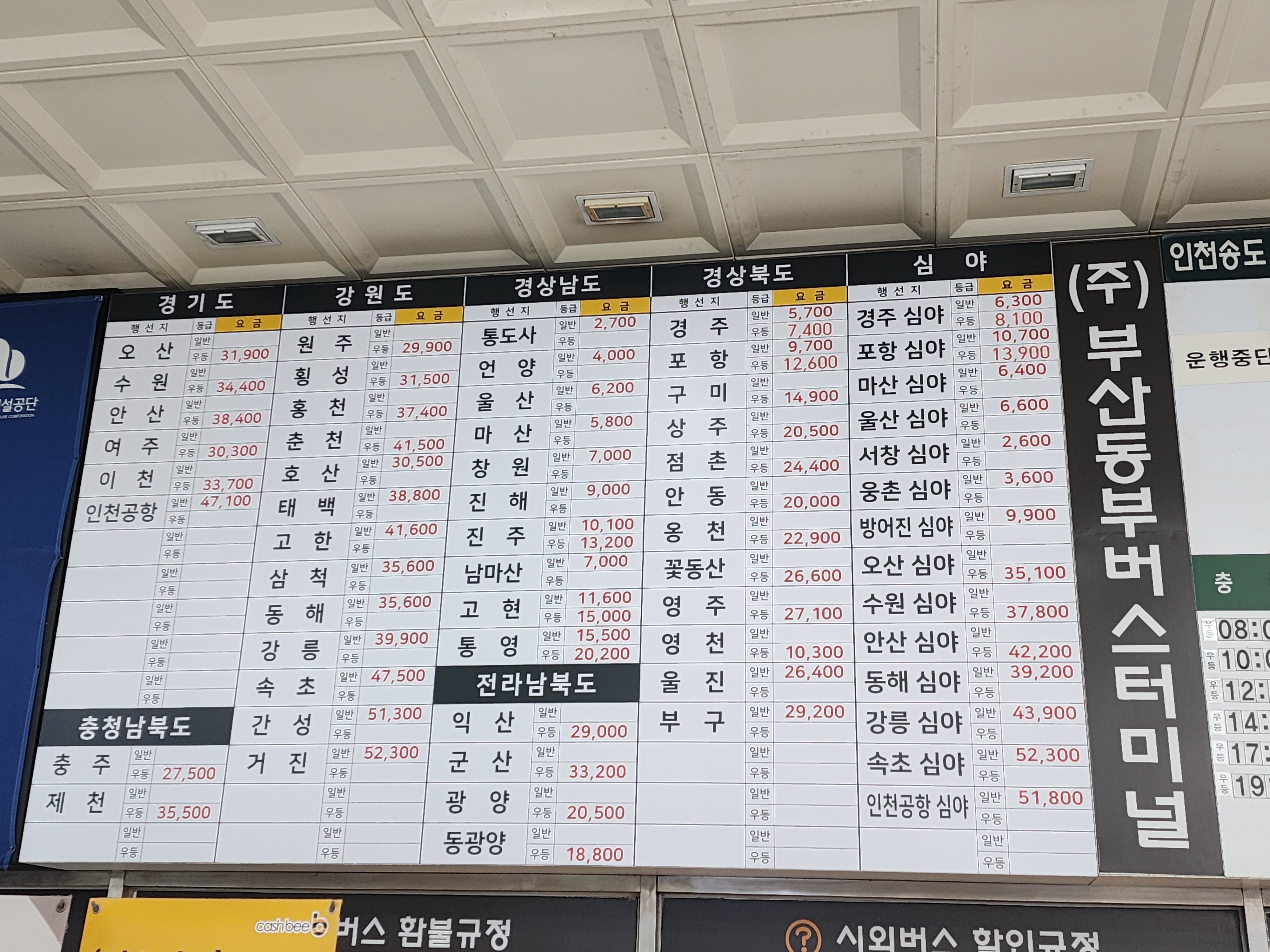 버스시간표랑 요금표 같은건