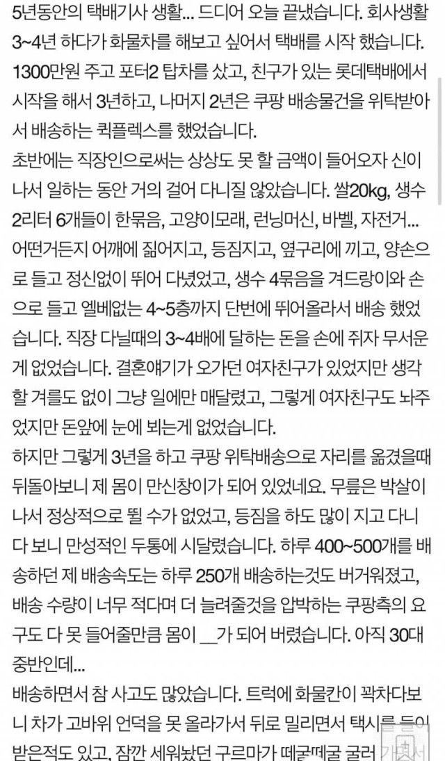 카테고리 없음 5년동안 힘들게 일한 택배기사의 마지막 배송 이야기 지환파더 2023. 5. 24. 11:17 반응형 반응형 공유하기 게시글 관리 지환파더 정보 저작자표시 (새창열림)